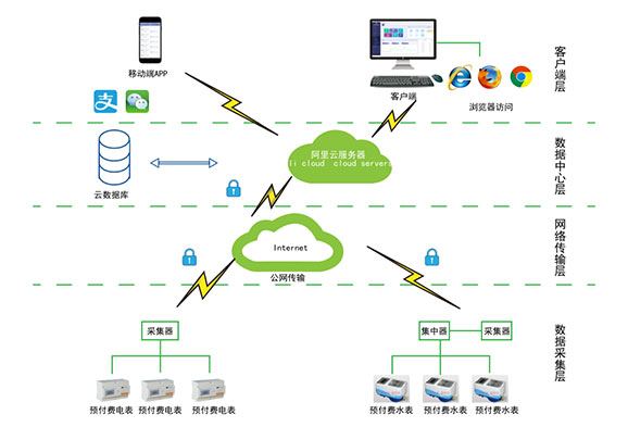 對(duì)于分布不同省、地市或同地市不同區(qū)域的連鎖商業(yè)、集團(tuán)、百貨、門店、物業(yè)、院校等業(yè)務(wù)分散,要求集中管理、線上支付,低額提醒、欠費(fèi)告警。但常規(guī)的本地插卡付費(fèi)、本地預(yù)付費(fèi)并不能完全滿足客戶管理需求,預(yù)付費(fèi)云平臺(tái)應(yīng)運(yùn)而生。AcrelCloud-3200水電預(yù)付費(fèi)云平臺(tái)無縫集成商業(yè)、物業(yè)公司、集團(tuán)企業(yè)、院校等分散布置的安科瑞DDSY/ADF系列電子式預(yù)付費(fèi)電能表、閥控智能水表等,提供微信、支付寶、銀聯(lián)等可選的在線支付方式,大大方便了用戶充值、圈存,提供預(yù)警和充值、退費(fèi)、電能消耗等記錄查詢,方便用戶和管理方的數(shù)據(jù)統(tǒng)計(jì)和財(cái)務(wù)分析,提供先交費(fèi)后使用的管控機(jī)制,大大降低了管理部門的收費(fèi)成本。